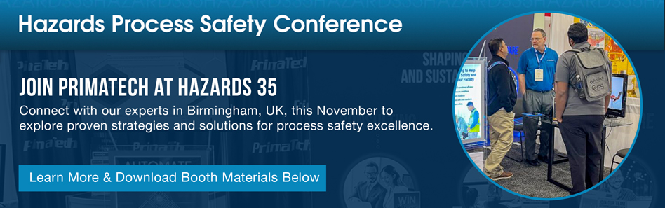 Be sure to visit Primatech at Hazards 35 in Birmingham, England, to learn how our consulting, software, and training services can help your organization strengthen process safety programs.